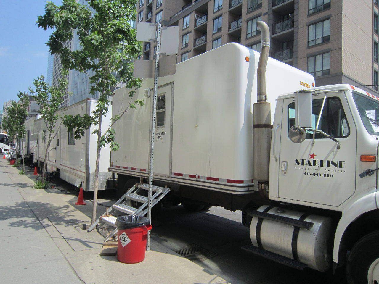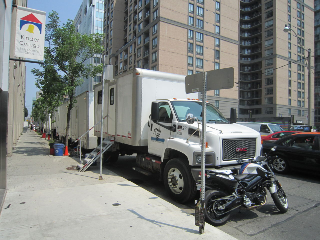 残念ながら、これらのトラック軍団がなんの映画・海外ドラマの撮影をしていたかは不明ですが、おそらく、私達が歩いていた付近でロケが行われていたことでしょう